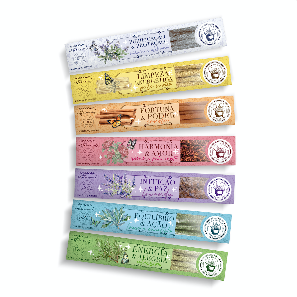 Pack com 10 caixas de cada aroma de incenso Cura Herbal