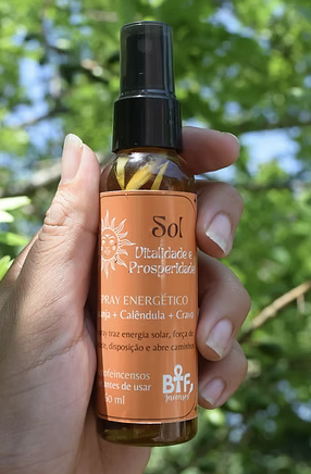 O spray Sol foi formulado com uma poderosa combinação de aromas naturais selecionados para proporcionar vitalidade, criatividade, concentração e trazer energia e prosperidade. Composto por laranja, calêndula e cravo, este spray traz consigo benefícios terapêuticos e mágicos que podem impulsionar sua energia e melhorar sua experiência cotidiana.
