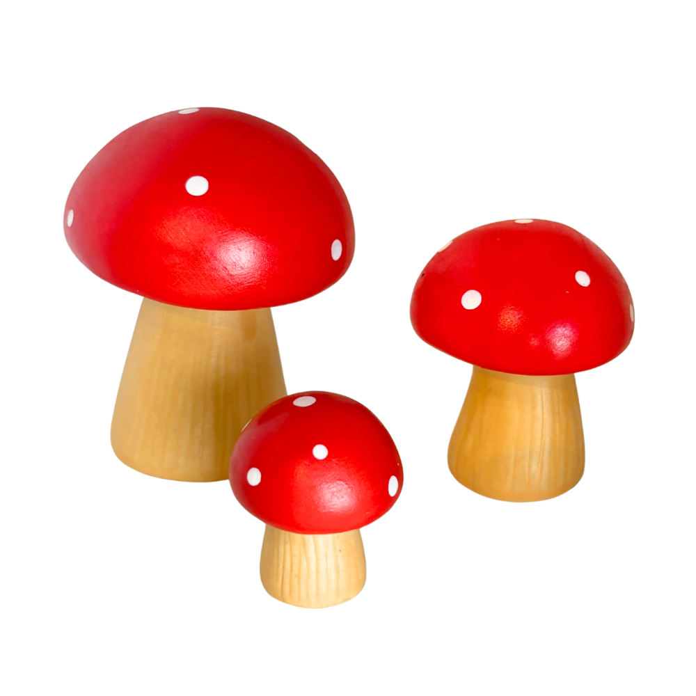 Cogumelos em porcelana resistente pintados à mão.